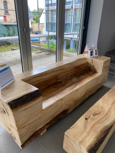 The tree has since been carved into a bench that sits in the lobby of the town Rathaus.